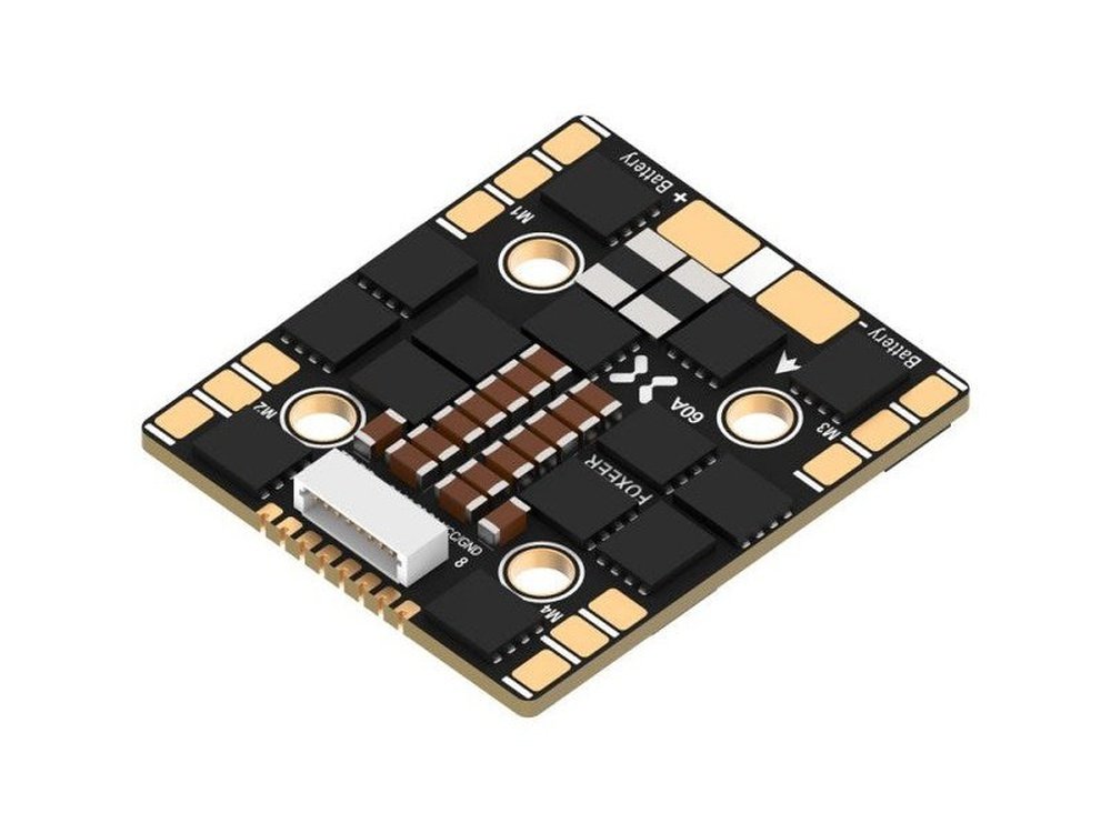 The Reaper F4 128K 60A Slim Mini 4-In-1 ESC from Foxeer is another addition to the popular line of electronics from Foxeer. With a slimmer profile, it can be better protected in frames as it won't be sticking out as far as the original non-slim Reaper ESCs. It also has all the features and quality expected of a Foxeer Reaper ESC, including high-quality MOSFETs, F4 chip on-board, wide 9-40V power input, and more! Now features the AM32 firmware.