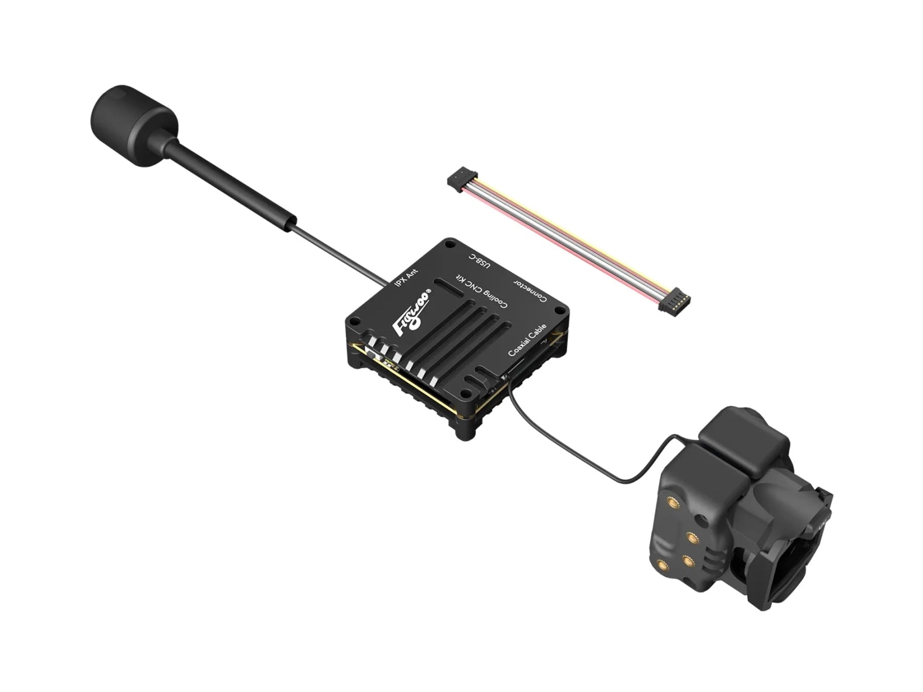 Pre-equipped with O4 pro cam adapter, Cooling CNC Kit, 150mm longer coaxial cable & LHCP UFL antenna—perfect for 3/5/7-inch+ FPV drones. You’ll also get the original O4 coaxial cable (50mm) for small FPV drones.