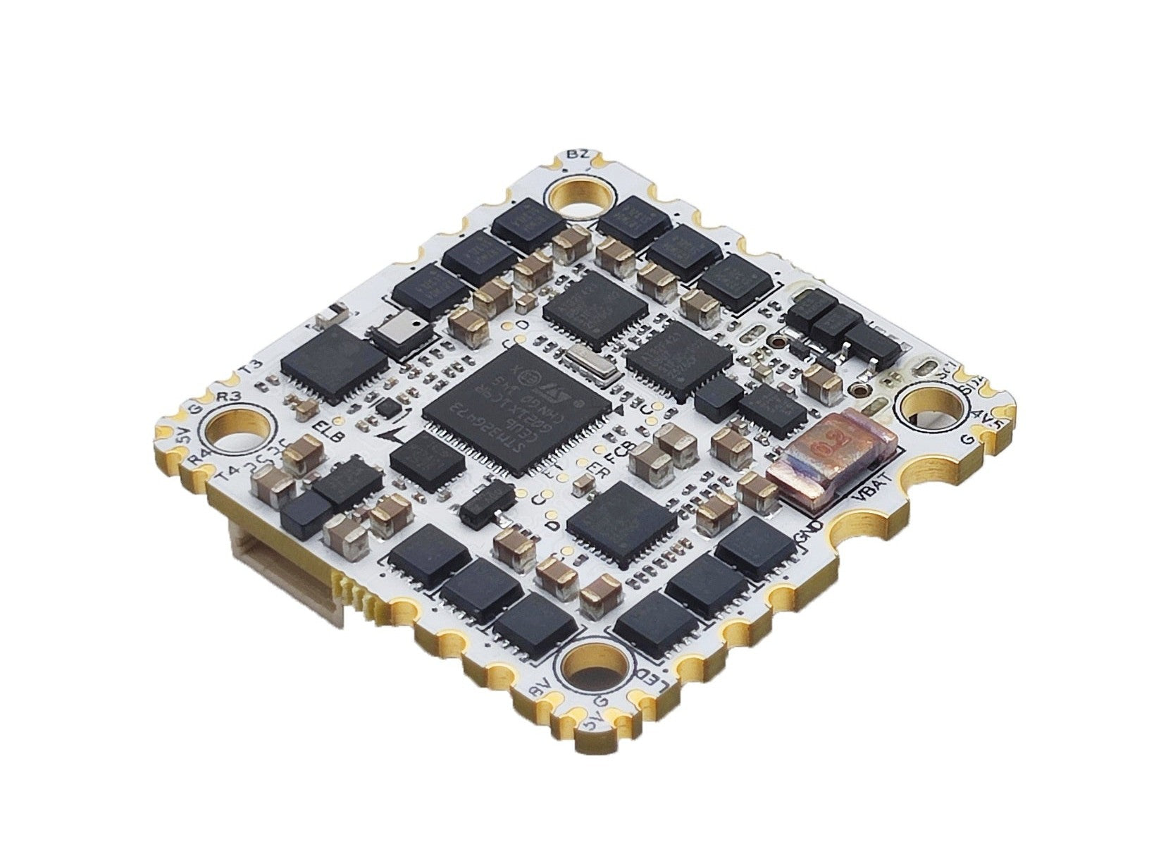 The onboard 32-bit 4-in-1 AM32 ESC provides clean, stable power delivery and improved transient response during rapid throttle changes. Each motor output supports 45A continuous with 60A burst capability, helping reduce voltage spikes, brownouts, and component stress. Supports 3-6s batteries for high performance flying.