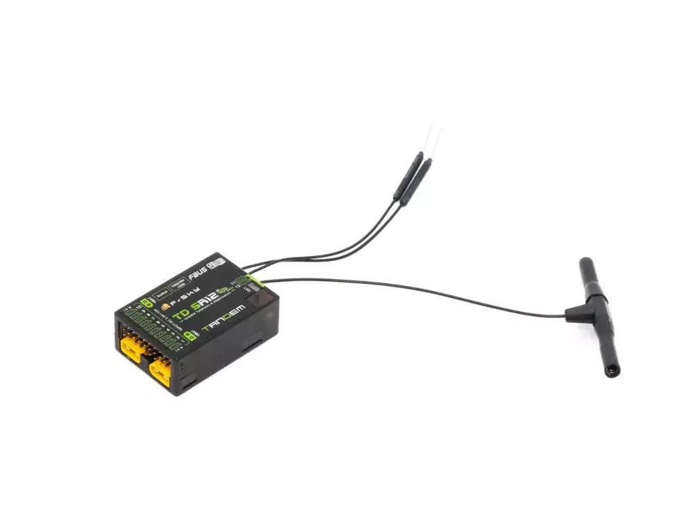 The TD SR12 receiver is equipped with a triple antenna (2×2.4G & 1×900M) design that provides multi-directional wide coverage for the remote signal and is designed for RC users who want to benefit from resilience and long-range in their radio communications.