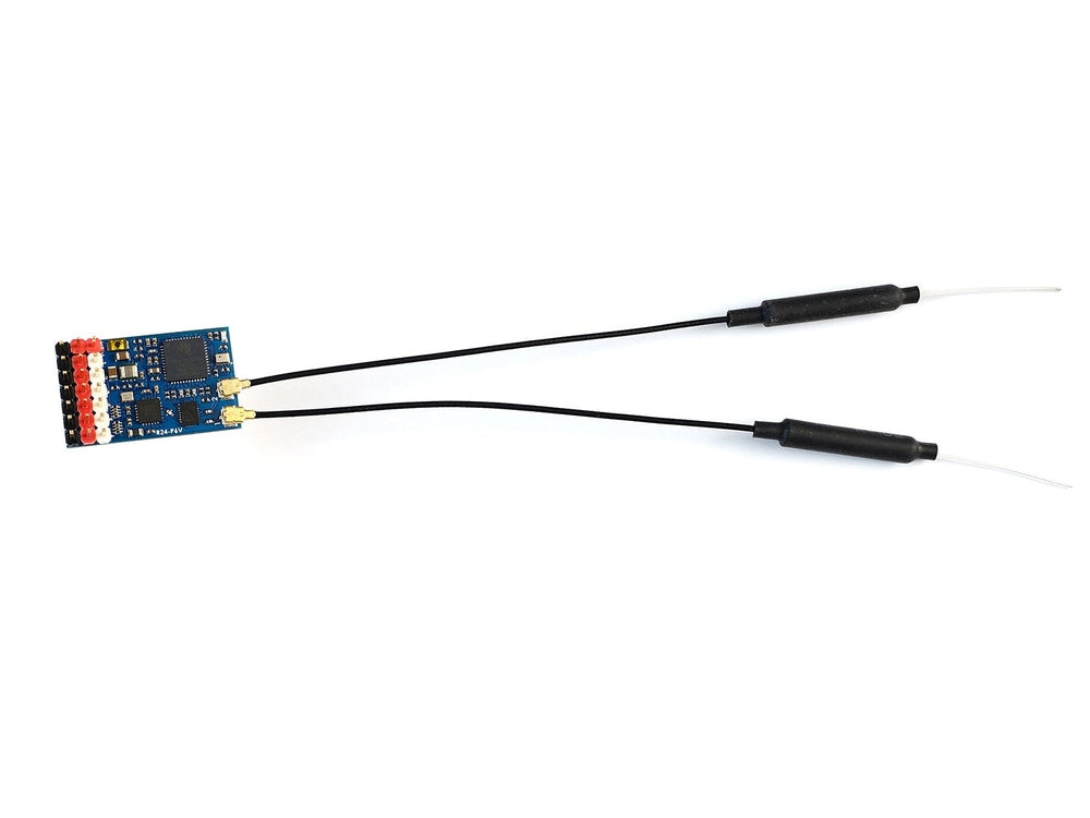 ExpressLRS 2.4GHz dual antenna PWM vario receiver, perfect for those needing connectors for servos. Improved performance with dual antennas, PA/LNA, 22.5dBm(180mW) telemetry power, and more.