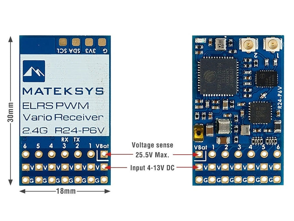 1x Matek ELRS-R24-P6V ExpressLRS 2.4GHz PWM Vario Receiver