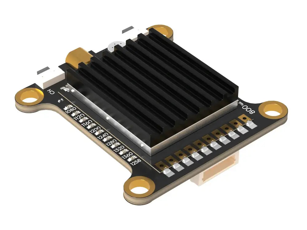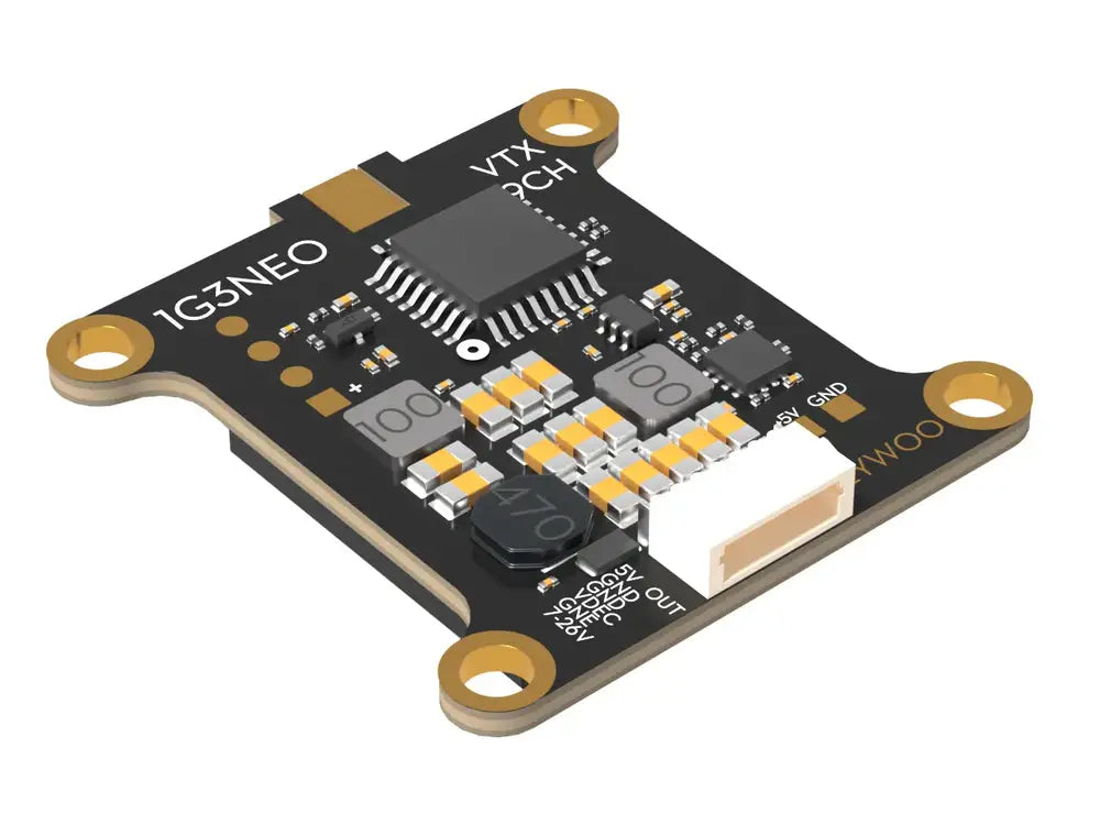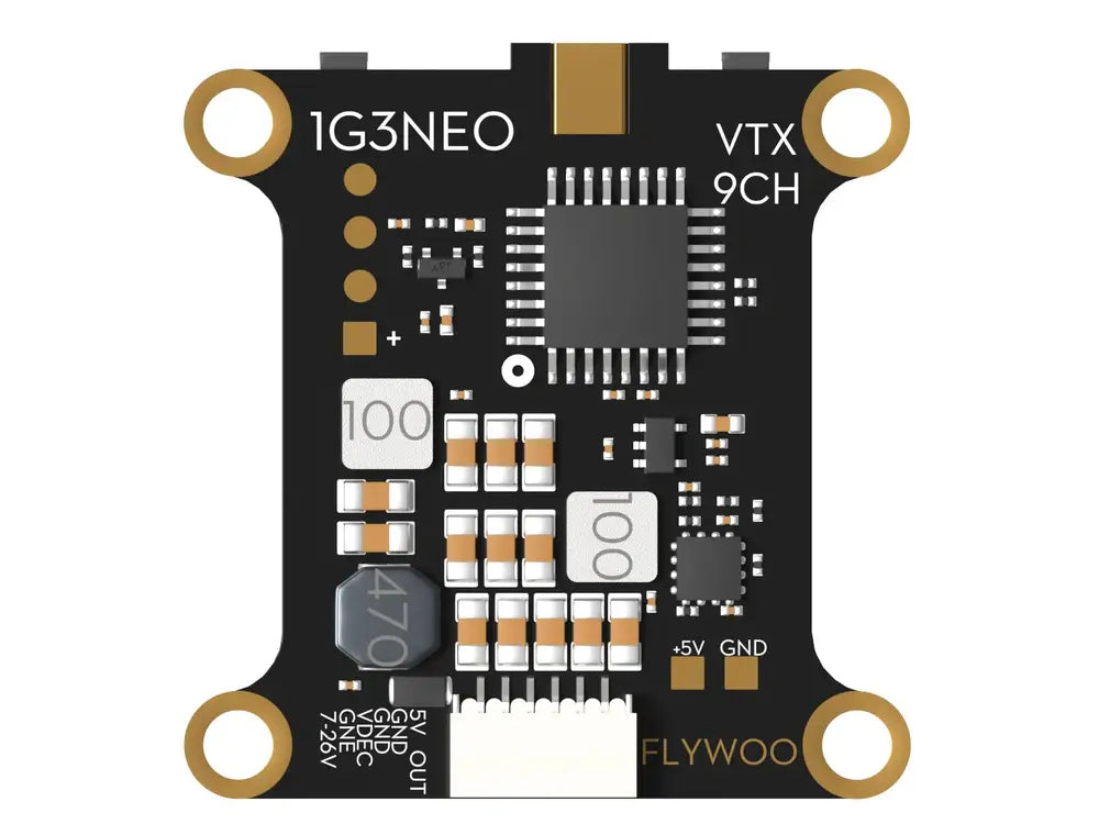 The Flywoo 1G3NEO Video Transmitter offers exceptional long-range analog performance and impressive power up to 800mW. The included heatsink ensures your transmitter stays cool, plus the Y-antenna and improved circuitry provide the smoothest, most reliable signal. The 7-26V DC input provides convenience and the built-in microphone gives the user the option of receiving audio. A modern 1.3GHz VTX.