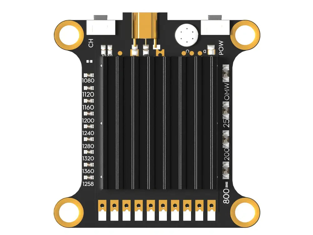 - RF power output: 0.1mw(0, pit mode), 25mw(1), 200mw(2), 800mw(3)