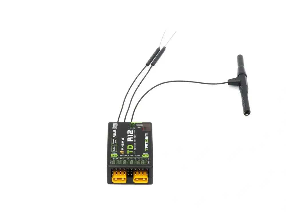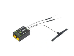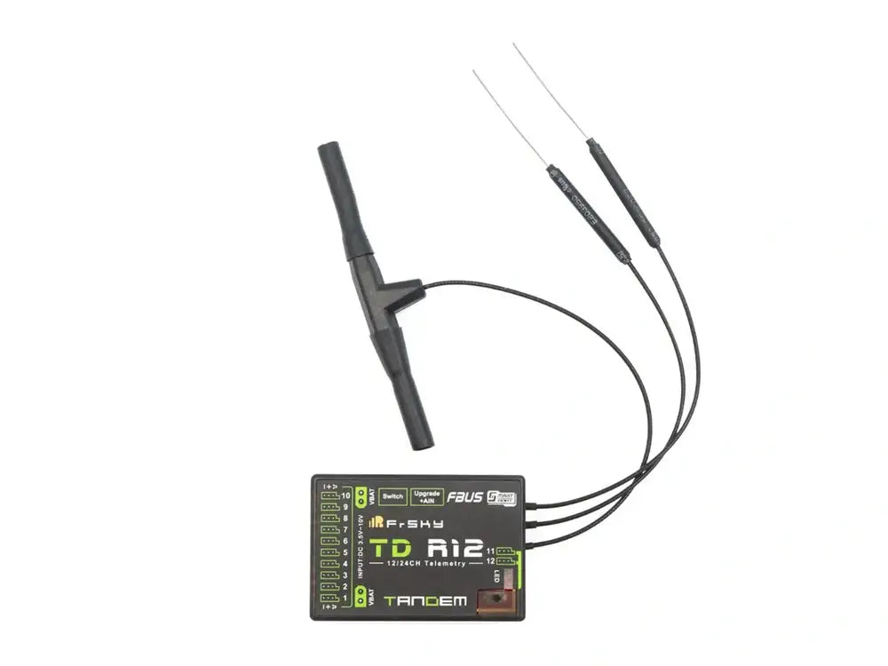 The TD R12 receiver is equipped with a triple antenna (2×2.4G & 1×900M) design that provides multi-directional wide coverage for the remote signal and is designed for RC users who want to benefit from resilience and long-range in their radio communications.