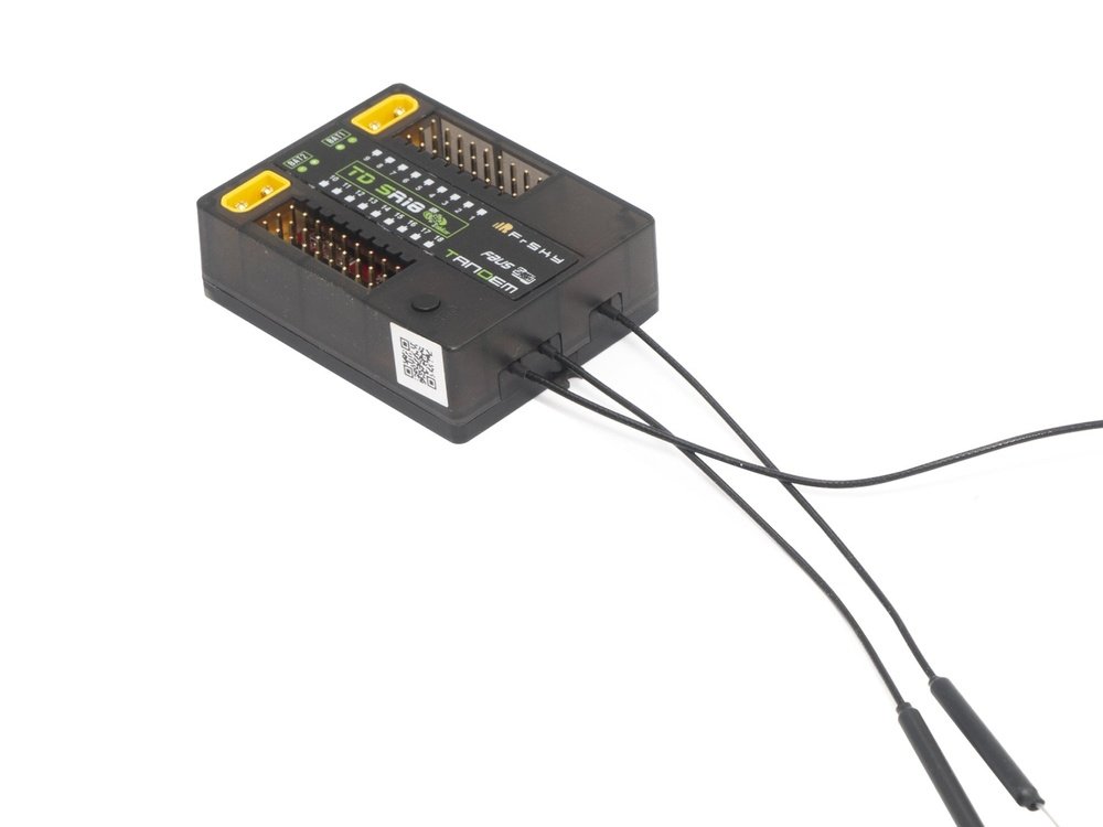 The TD SR18 receiver is equipped with a triple antenna (2×2.4G & 1×900M) design that provides multi-directional wide coverage for the remote signal and is designed for RC users who want to benefit from resilience and long-range in their radio communications.