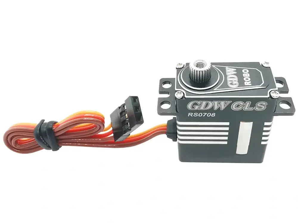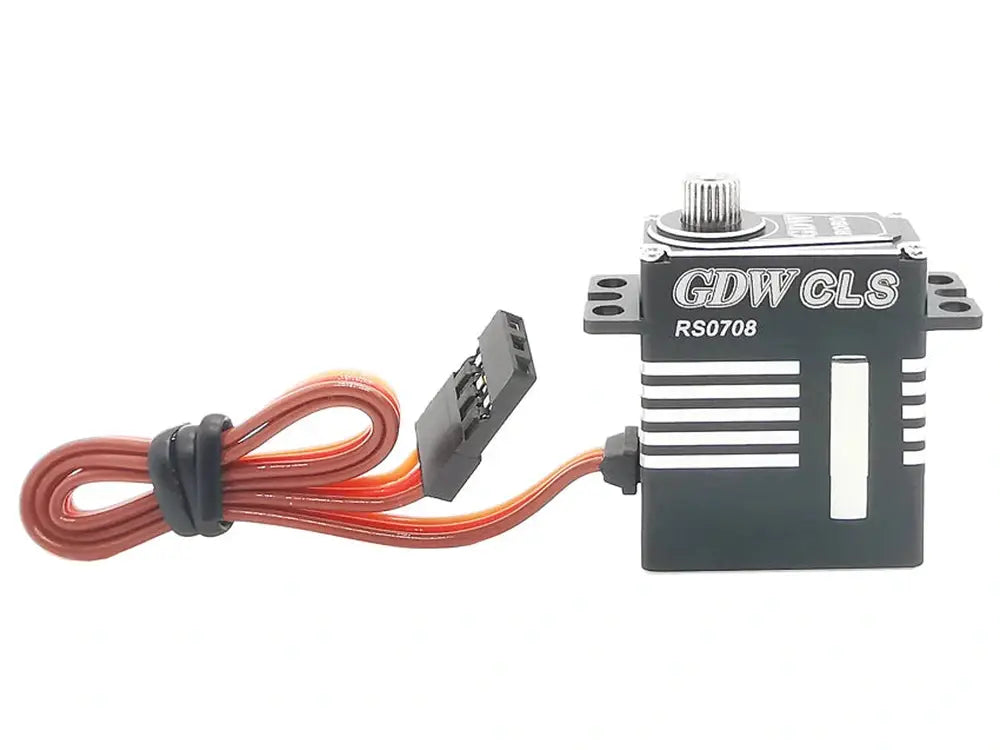 The GDW RS0708 Servo features a high-speed coreless motor and metal gear construction for a more durable and efficient servo. With high torque and consistent speed, this mini digital servo is ideal for precision applications. Available in 350-degree self-centering and 360-degree continuous. A micro-sized servo designed for any pan/tilt.