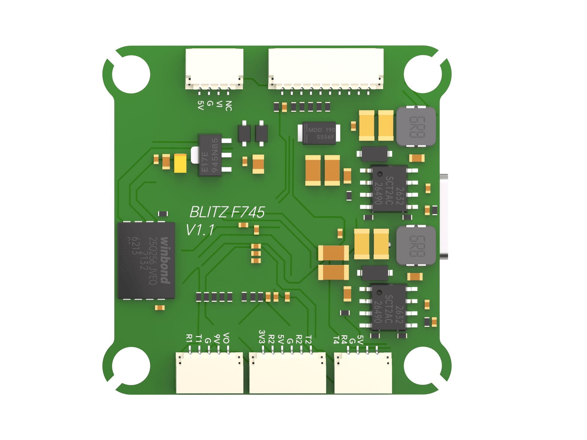 Introducing the iFlight Blitz F745 Flight Controller, featuring an improved design and better components for lower electrical noise and top-of-the-line performance. With its fast STM32F745 MCU, plug-and-play DJI HD VTX compatibility, and quality engineering, this flight controller is the perfect choice for your next drone build.