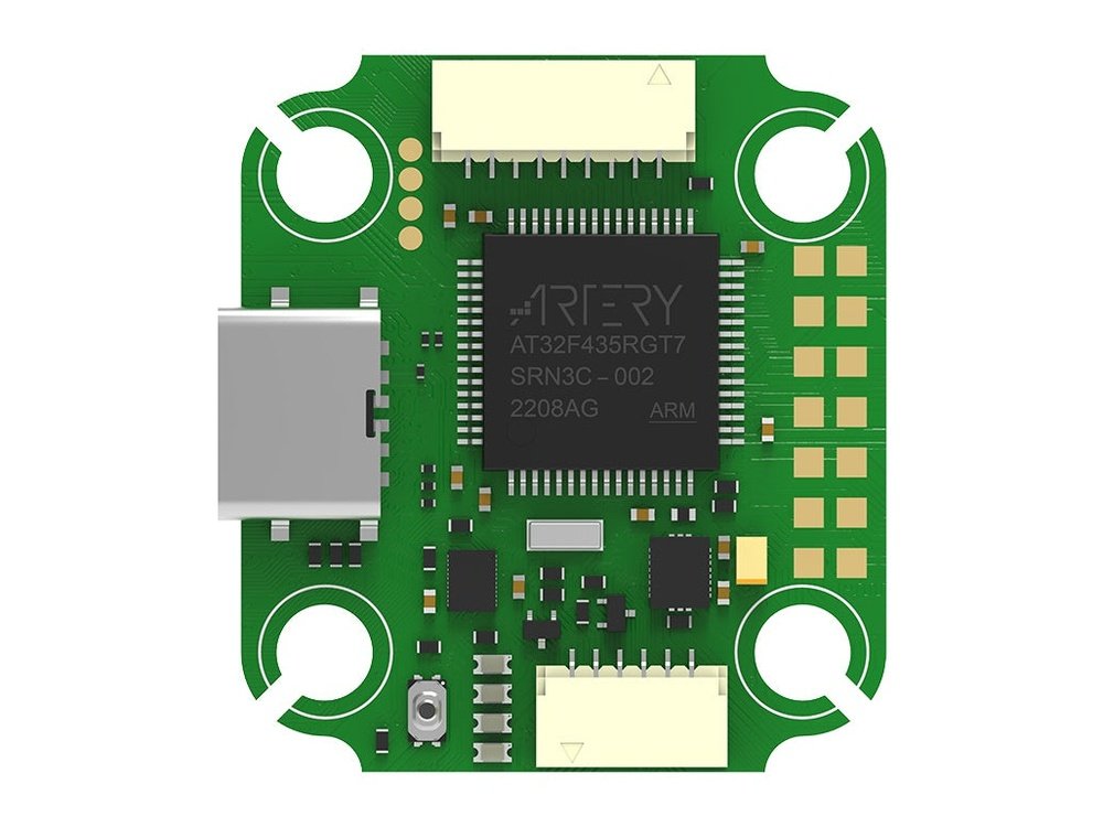 This flight controller is based on the ATF435 MCU made by ArteryTek. It is an alternative to the traditional STM32 MCU found on most Betaflight flight controllers. With performance somewhere between the STM32 F405 and F722, it is a great option for flight controller manufacturers looking for value and availability. The price-performance ratio is simply unmatched.