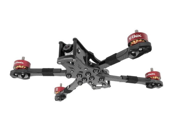The ApexDC is a variation on the typical 'dead cat' frame which we have modified to keep the front and rear motors aligned, allowing us to maintain the much loved compressed-x geometry in the motor layout.