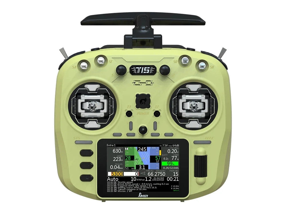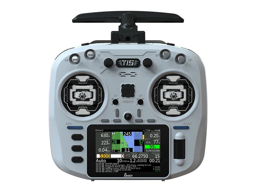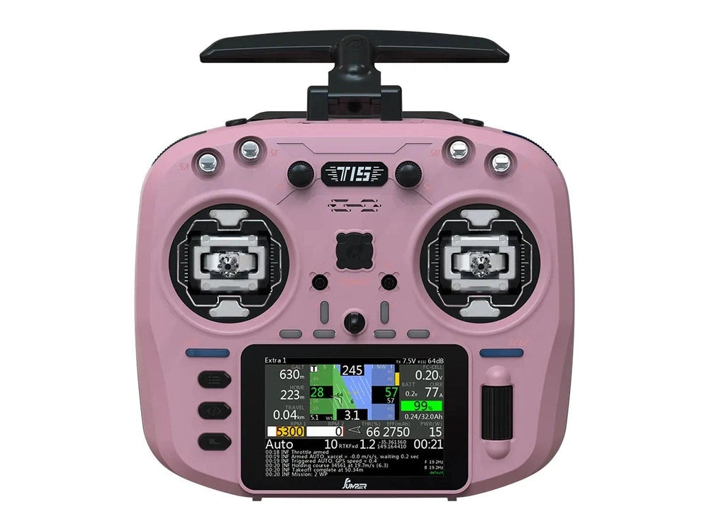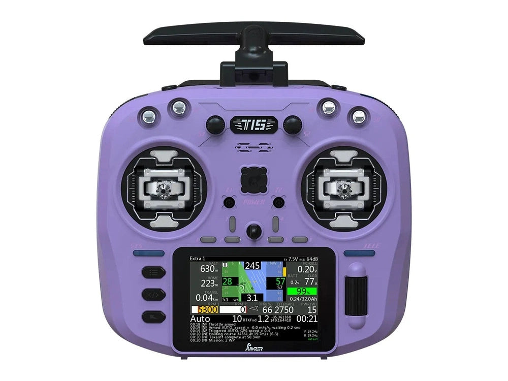 The Jumper T15 2.4GHz ExpressLRS Radio Controller is a compact flagship controller, featuring 3.5" color touch screen and full-size VS-M hall sensor gimbals. With Edgetx technology and 7 available colors, this controller offers precision and customization for your drone or RC vehicle.