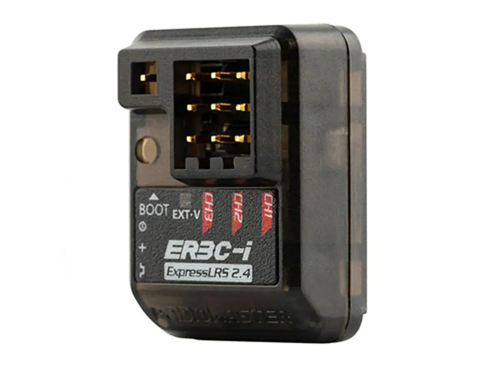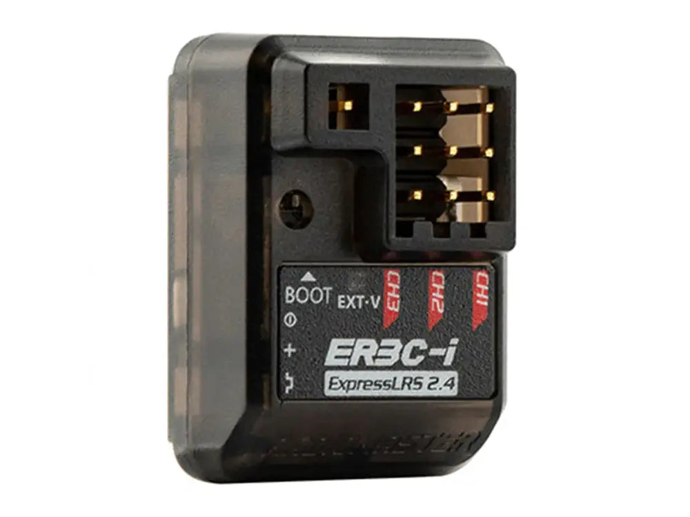 The ER3C-i ELRS receiver can drive up to 3 servos and has built-in receiver voltage telemetry and battery telemetry with the ability to automatically detect which voltage input to use. The ER3C-i features a built-in high-sensitivity ceramic antenna, it is designed for all types of surface models and provides a clean install without antenna wires to worry about.