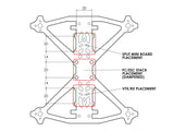 - Side plates (w/adjustable FPV cam placement) = 2mm bi-axial Toray Carbon Fiber